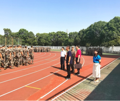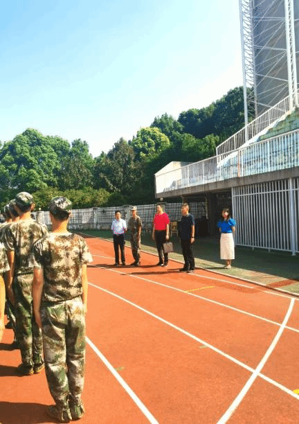 张海涛书记问询了训练进度与安排,高度赞扬了我院参训新生不畏烈日、艰苦训练的坚毅品格,并勉励新生们在后续的训练中突破自己,顺利完成军训任务。朱培栋院长对教官的所取得的成果表示肯定,表达了对教官辛勤付出的感谢,希望教官在接下来的日子里继续保持高标准高要求训练新生,让新生有铁一般的纪律和坚强的意志。刘辉副院长悉心询问部分新生参训的感受,表示军训是大学的第一堂课,应该认真完成军训,也对新生朝气蓬勃、纪律严明的状态高度赞扬。