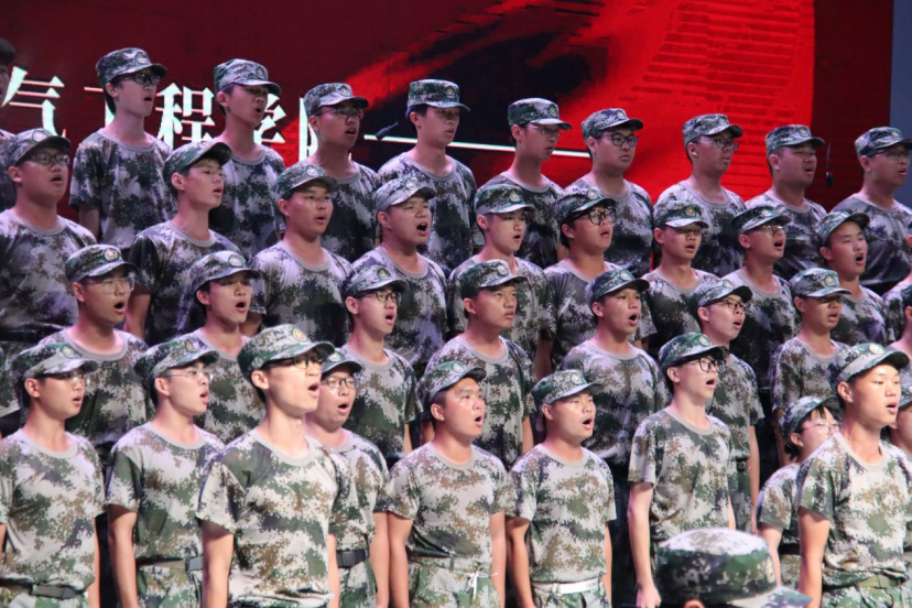 电信学院新生用歌声唱出了对党和国家的热爱之情,也充分展现了当代大学生的蓬勃朝气和奋发有为的精神风貌。