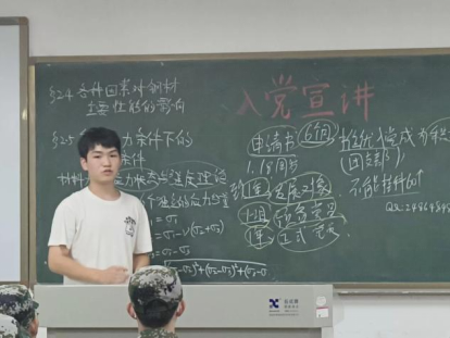 “中国共产党的基本知识、为什么要加入中国共产党、怎样才能加入中国共产党,入党的条件以及入党第一步递交入党申请书……”,学生支部党员陈佳鑫、刘睿、预备党员易佳兵、蒋四海等下班党员深入大一新生自习室,与新生面对面进行交流,引导新生在思想上、行动上不断向党组织靠拢。