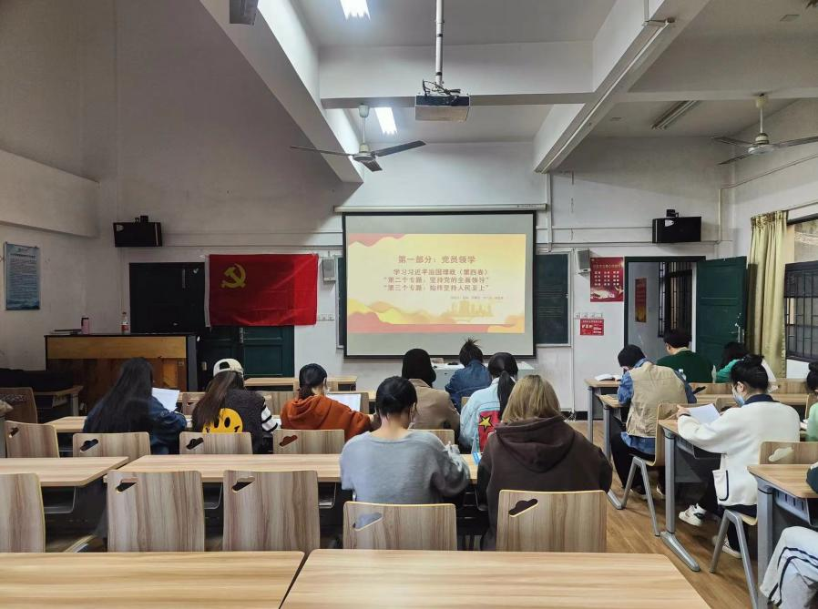 会议集中学习《习近平谈治国理政(第四卷)》第二、第三个专题。学生党员们在学习过程中深刻体会,并结合自身实际有感而发,“我们要带着责任、带着信仰、带着情感,认真学习研读切实用习近平新时代中国特色社会主义思想,武装头脑、指导实践、不断汇聚起新时代新征程上团结奋斗、勇毅前行的磅礴力量”。最后,党总支副书记傅诗贻强调,党员们要发挥其党员的先锋模范作用,乐于奉献,引导大家要更好地服务社会、奉献群众。