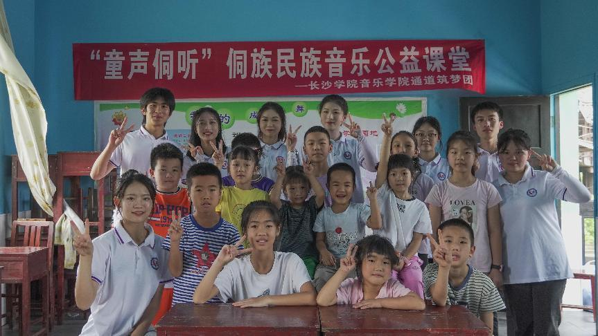 “与音同行,古韵新生”——侗族非遗传承音乐课堂与文化扶持志愿服务项目始建于2018年,充分发挥专业优势,秉承“唱好一支侗歌、教好一批孩子、服务一方百姓、传承一脉文化”的服务宗旨,深入通道侗族自治县9个乡镇、14个村寨,持续开展、整理侗族文化信息资料、民族音乐教材编写修订、民族音乐公益课堂、文艺演艺帮扶、寻访困境儿童及探访非遗民俗文化等一系列志愿服务活动。打造“南楚韵,通道红”文化活动品牌、“童声‘侗’听”公益课堂教学品牌等,把高校优势和当地特色结合,持续性地推动侗族民族文化的传承和运营,全方位地助力侗族文化传承发展与乡村振兴。项目开展至今,开展近300次志愿服务活动,累计服务时长3000多小时,服务7500余人次,受到光明网、中国青年网、中国教育在线、新湖南、红网等主流媒体的宣传报道,获得良好的社会支持与评价。