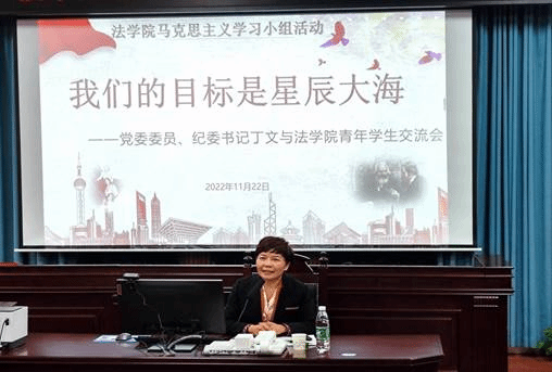 月22日下午, 法学院马克思主义学习小组交流活动在涵虚楼A多1教室顺利举行。校党委委员、纪委书记丁文深入到学生一线,以“我们的目标是星辰大海”为题,与青年学生进行了一场面对面的交流。法学院青年学生党员、发展对象和入党积极分子及部分党政班子成员、学生辅导员参加了本次活动。