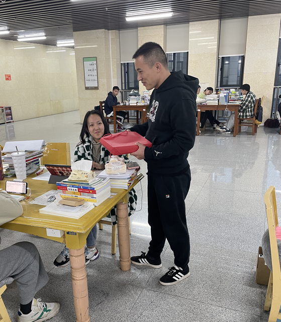 “学院的辅导员很暖心,把礼品送到了自习室,打开一看是印有故宫博物院封面的文具,十分精致!”19软件01班王淼同学在自习室收到了礼物激动地说。学院的暖心礼品极大的激励了考研学生刻苦复习、一心上岸的信心、决心、雄心,也被众多同学刷了屏。