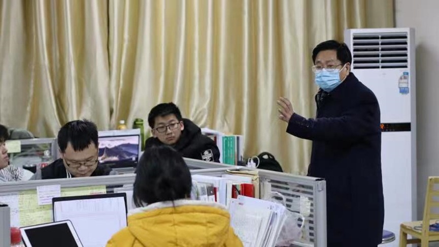 “空调制暖吗?”、“最近长沙疫情形势复杂,希望大家心态保持平和,坚持党和政府的防疫政策,坚守考研这块阵地。”电信学院党总支书记张海涛在理工楼C507对考研学子的近状进行了问询,表示电信学院对各位考研学子遇到困难一定会尽力解决,也希望大家能认真备考,在每次自我检测中不断进步。