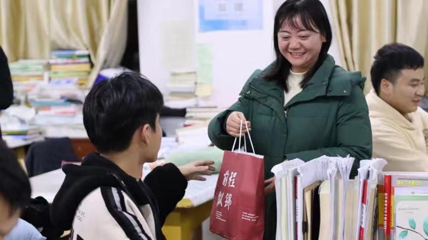 “两瓶牛奶,一张手写的祝福明信片,还有几个橙子和暖宝宝”、“希望这能给你们带来春天般的温暖”、“备好每个科目的纠错本和笔记本”。 2022年12月6日-12月7日,电信学院开展考研慰问活动,长沙学院副校长陈世平、学工部部长徐远超、电信学院党总支书记张海涛、电信学院党总支副书记江艳以及辅导员聂云志、娄宁娜、谢力为考研同学加油助力,送去学校和学院的温暖和祝福。
