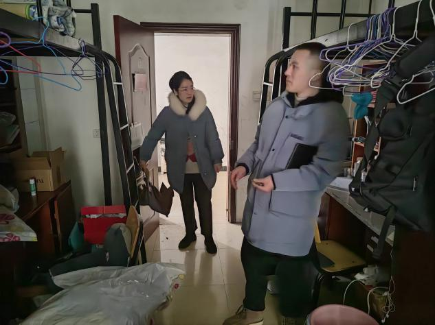 为落实安全宣传进学校和全员安全培训要求,确保春季开学校园安全稳定,展现学院新学期新气象,2月12日下午土木工程学院党总支书记杨群英和全体辅导员去往敏学、知行等宿舍园区查看学生内务整理情况,与学生进行亲切交谈,贴心叮嘱学生注意防寒保暖,提醒学生注意疫情防控和防电诈、防溺水、防性侵、防欺凌、防暴力伤害、防踩踏;强调了交通安全、食品与卫生安全、消防安全等。