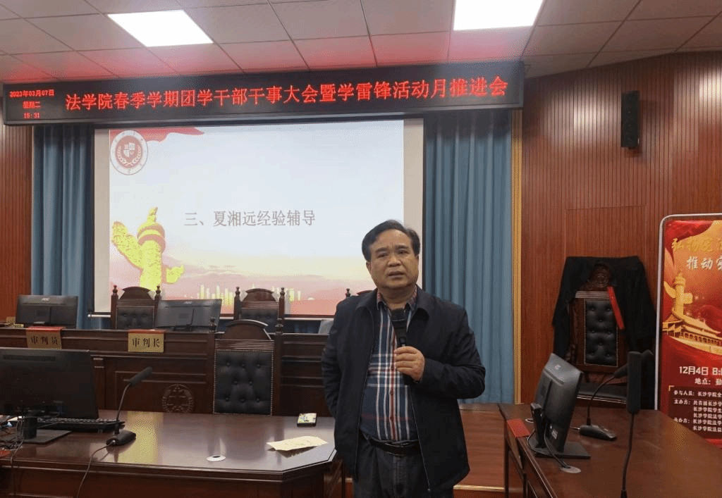 会议进入第三项议程,由夏湘远与在场学生进行了理想信念教育。夏湘远向大家讲授了“大学之道”。提出大学生应做到“入门须正,立志须高”,强调了“立志”的重要性。他指出,有高远志向的同学,往往有着更好的精神面貌。他以马克思、毛泽东为例,激励同学们以“为国家、社会做贡献”为志向,努力奋斗,成为优秀的人。他指出我们应当追求“人生的不朽”,以出世的情怀做入世的事情,树立远大理想。同时,他向大家提出了“知行合一”的要求,指出“知为行之始,行为知之成”,知行为一体。他鼓励在场学生将高远志向投入到实践中去。最后,他向大家讲述了读优秀书本的意义,并询问了在场学生的阅读情况。他建议大家在学好专业知识的同时提高阅读量,多读书,读好书。听完夏教授的发言,与会学生受益颇深。随后,胡卉明总结讲话,她强调,在场学生须得提高眼界境界、提高个人能力、发扬奉献精神、做好传帮带、更好的开展团学工作。在场学生认真聆听,更加明确了自己新学期的规划与目标。