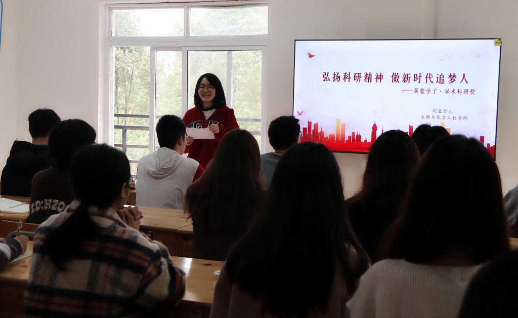 “‘何鱼作队’学术科研团队由1名党员指导老师和5名学生党员组成,我们是科教兴国战略的受益者、参与者、实施者,我们也希望能成为学院学生科研团队的领跑者!”——湖南省第十七届芙蓉学子学术科研奖获奖团队“何鱼作队”的刘娜同学代表团队在作事迹分享时动情地说道。
