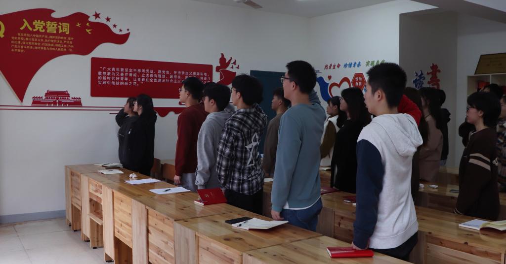 姚玲为团队成员颁发荣誉证书。她对“何鱼作队”团队在学术科研方面的突出表现表示高度认可,并勉励全体学生党员不负时代使命,在全面实施科教兴国战略的伟大征程中以“人人作旗帜,人人当先锋”的高标准严格要求自我,助力我国加快实现高水平科技自立自强,打赢关键核心技术攻坚战。今后,生化学院还将继续培养和发掘优秀学生党员典型,以事迹分享、表彰奖励等形式激励全体学生党员进一步发挥示范、带动作用。最后,全体与会师生面向党旗,重温入党誓词。