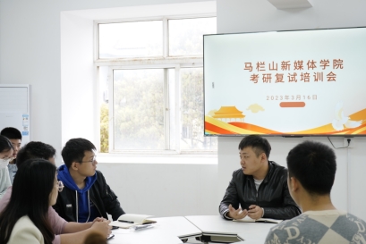 3月16日中午12点,马栏山新媒体学院(影视艺术与文化传播学院)考研复试培训会在知行三栋五楼“一站式“学生社区功能室召开。马栏山新媒体学院辅导员曾喆老师、谭凤连老师、徐淼老师出席培训会。