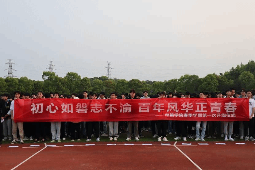 为深入学习贯彻党的二十大精神,引导广大青年挺膺担当,在仪式教育中增强理想信念、砥砺奋进力量,4月3日上午7点,电信学院在天健体育场举行了春季学期升旗仪式。党总支书记张志刚、副书记江艳、学工办全体辅导员老师、学院1600余名在校学生参加了本次升旗仪式。