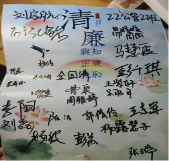 同学们在“清廉”海报上纷纷签名,作出兴清廉之气的承诺