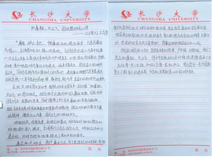 学院团员青年纷纷表示,将从身边小事做起,做好点滴的积累,不断增强纪律意识、廉洁意识,用实际行动传承廉洁文化,弘扬清风正气。“作为一名学委和学生会干部,我的工作和’廉洁’一词息息相关,我不能因为和某一同学关系好就包庇他或者开后门。”20物流2班学习委员李令说。