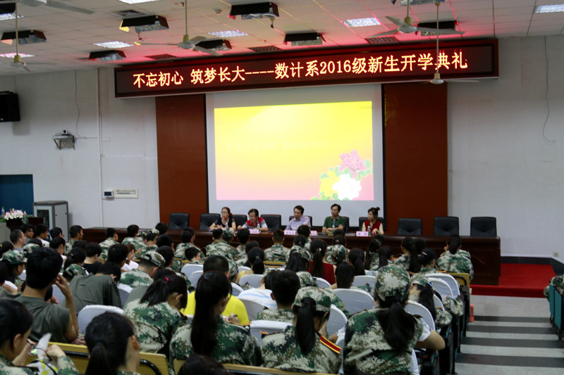 为迎接2016级新生的到来,更好的让455名大一新生融入和适应大学生活,数计系于2016年9月18日下午14:00在致远楼学术报告厅举行“不忘初心,筑梦长大”2016级新生开学典礼。