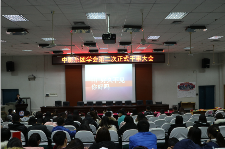 最后,大屏幕播放了第十八届学生会干部录制的视频,他们在视频中表达了对现任部长的感谢和鼓励,并对第十九届学生会干事表示祝贺和激励,全场温情弥漫,中影系第十九届团学干部年终大会圆满结束。