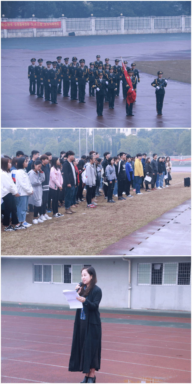 礼毕后,学生代表申玥做了国旗下的发言。她通过身边的实例给新生同学们列举了一系列从高中升入大学因学习、生活等环境转变而出现的各类问题,并劝告同学们,要思考自己的人生追求,心怀理想与信念,不断提升自己的精神状态与生活学习状态。随后,音乐学院党总支书记陈滨滨做了国旗下总结讲话。陈书记为同学们回顾了习近平总书记在十九大所做的《决胜全面建成小康社会 夺取新时代中国特色社会主义伟大胜利》的报告,告知同学们作为富有朝气、富有梦想的青年一代,要从现在做起,从自己做起,立德修身,诚信为本,争做新时代有新思想与新目标的合格大学生。