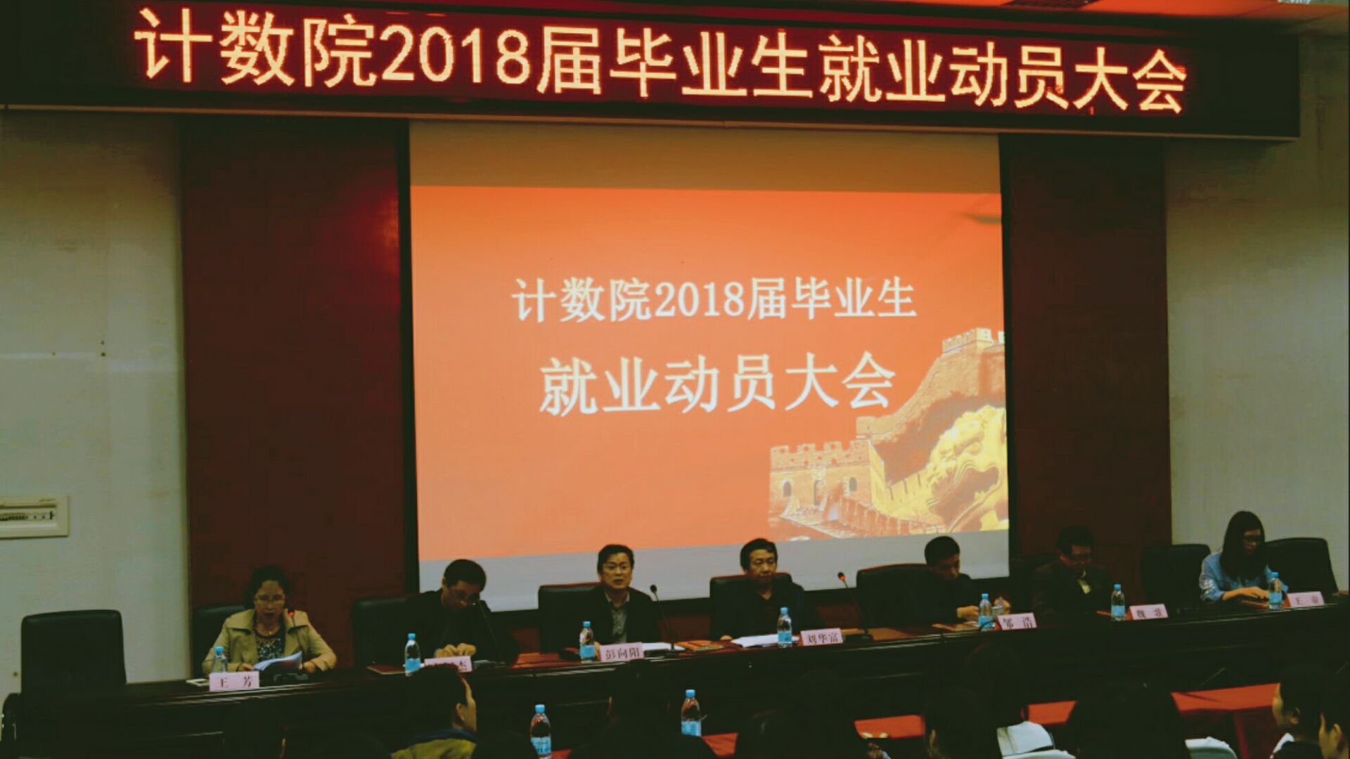 最后一项议程为彭向阳书记作动员讲话,号召全院14级同学积极就业、理性择业、谨慎创业,第一要务实勤为,转变就业思路,仰望星空也要脚踏实地,抢抓机遇、努力行动;第二要实践善为,壮大就业格局,行百里者半九十,大学四年即将画上句点,应届毕业生更应把就业实践成为青春搏击的能量、动力、源泉;第三要奋发有为,争创就业优势,人总得仰望些什么,大学毕业生应该充满昂扬朝气和蓬勃锐气,把就业之梦融入到新时代的中国梦之中。