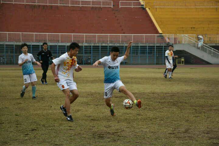 电信学院的球员们快速进入状态,开场不久,一脚长穿到对方球门前,球门前的队员心领神会,右脚一重击,足球应声入网,电信学院1:0领先。法学院的球员们也奋力直追,回敬了一波强有力的攻势,总比分1:1拉平。随着比赛时间的进展,电信学院的球员状态越来越好,在下半场的开端再获第二次进球;在接下来的比赛中连进四球,最终以6:1的比分取得比赛胜利。