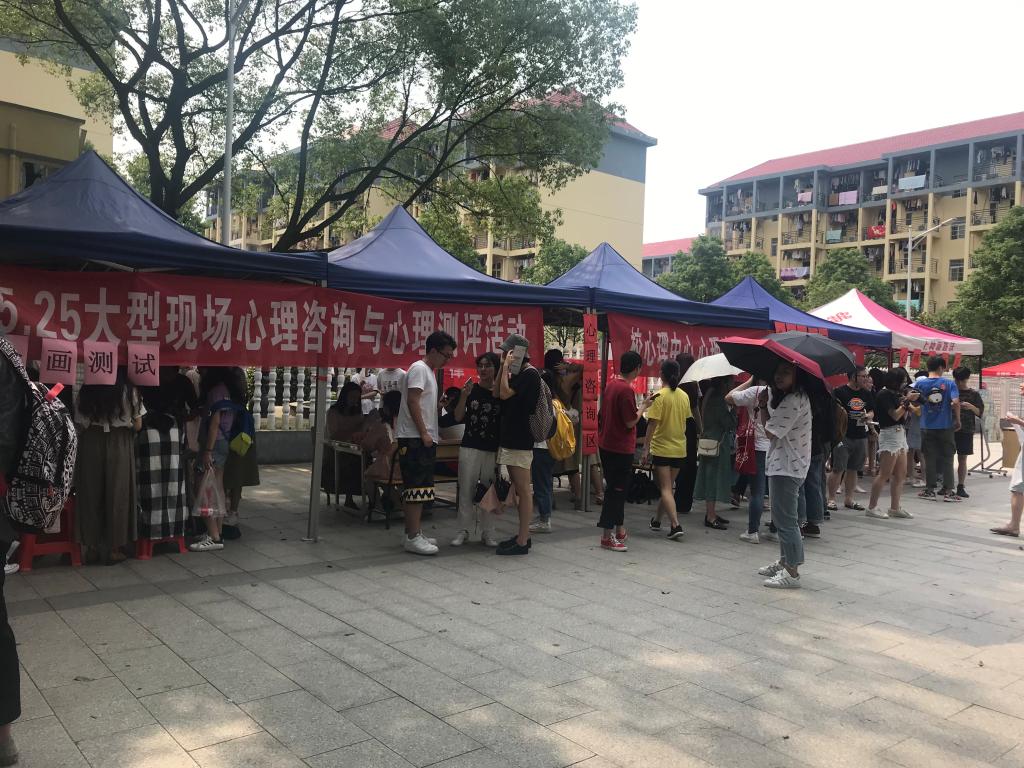 2019年5月24日下午3点,由长沙学院校心理健康教育中心主办,校学生会心理部承办的5·25“大型现场心理咨询与心理测评”活动在勤思广场举行。校心理中心专兼职心理咨询师段思岚、董彦皓、李素娟、邱平等均来到活动现场,旨在为同学们答疑解惑,提供心理咨询服务。本次活动现场设置有趣味心理测试、专业心理量表测评、心理咨询、房树人测试、添加画测试、现场活动等,形式多样,具有科学性、趣味性和吸引力。在现场还发放了心理卡套、名片、心理知识宣传手册等进行心理健康知识的宣传。