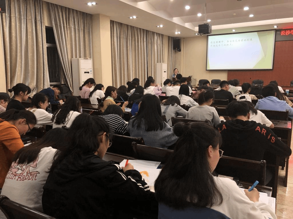5月30日晚7点半,长沙学院第十四届大学生心理健康教育月活动收官活动——心理健康教育讲座在图书馆一楼会议厅顺利举行。此次讲座邀请到湖南省脑科医院心理治疗师、婚姻家庭治疗师杨醉文老师为我校师生主讲《心灵彩绘与自控人生》。学生工作部(处)副处长姜巧玲、校心理中心主任段思岚、校心理中心的全体专职老师、部分二级学院的心理联络员老师出席讲座,校院两级朋辈心理工作队伍等100余名同学,共同聆听了讲座。