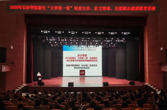 10月13日下午,我校2020级新生“大学第一课”健康教育主题活动在大礼堂举行。本次活动由湖南省卫计委、长沙市卫生健康委、长沙团市委等相关职能部门主办。我校学生工作部(处)、校团委承办,学工部、后勤处、校团委、保卫处负责人和新生辅导员及全体新生参与讲座。