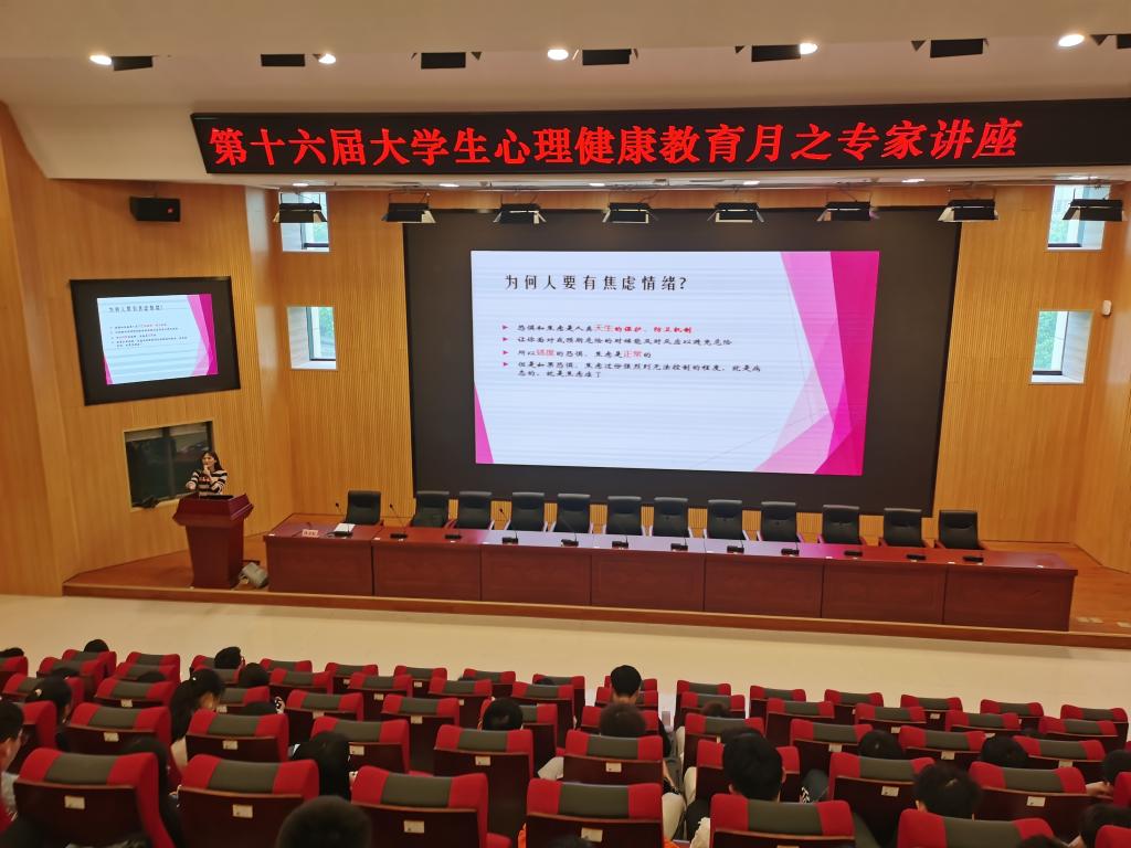 为进一步普及大学生心理健康知识的宣传教育,519日下午2点,第十六届大学生心理健康教育月专家讲座在新图书馆二楼报告厅顺利举行。本次讲座由我校心理健康教育中心向伟老师主持,湖南省脑科医院睡眠障碍与神经症科副主任医师陈金虹主讲。各二级学院心理部成员、宿舍心理信息员、校心理部成员等参与学习。