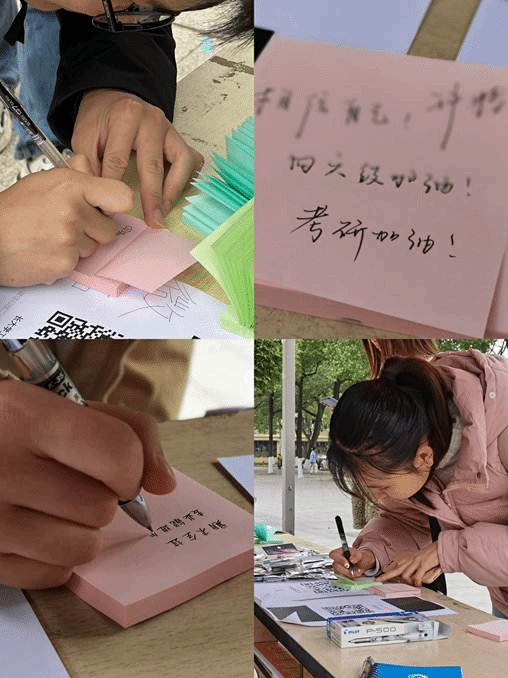 “成功上岸,一‘研’为定”、“逢考必过”、“高数好难,怎么学习?”活动现场,同学们通过在留言展板上写下自己的期末目标、诚信考试承诺以及考研祝福等,为自己或者参考学生加油打气。同时,通过学习备考的留言提问与解答,增强各学院与各年级学生之间的交流共进。300余名同学广泛参与线上集赞活动,通过分享备考经验,营造良好学习氛围。