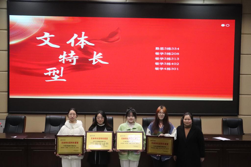 李晗、叶佳、喻磊分别为“灵秀之屋”寝室装扮、“青春如此甚好”特色寝室、“因为彼此,所以更好”共叙寝室故事等项目的获奖集体颁奖。胡小毅为获得“优秀组织奖”和“优秀指导老师奖”的集体和个人颁奖。