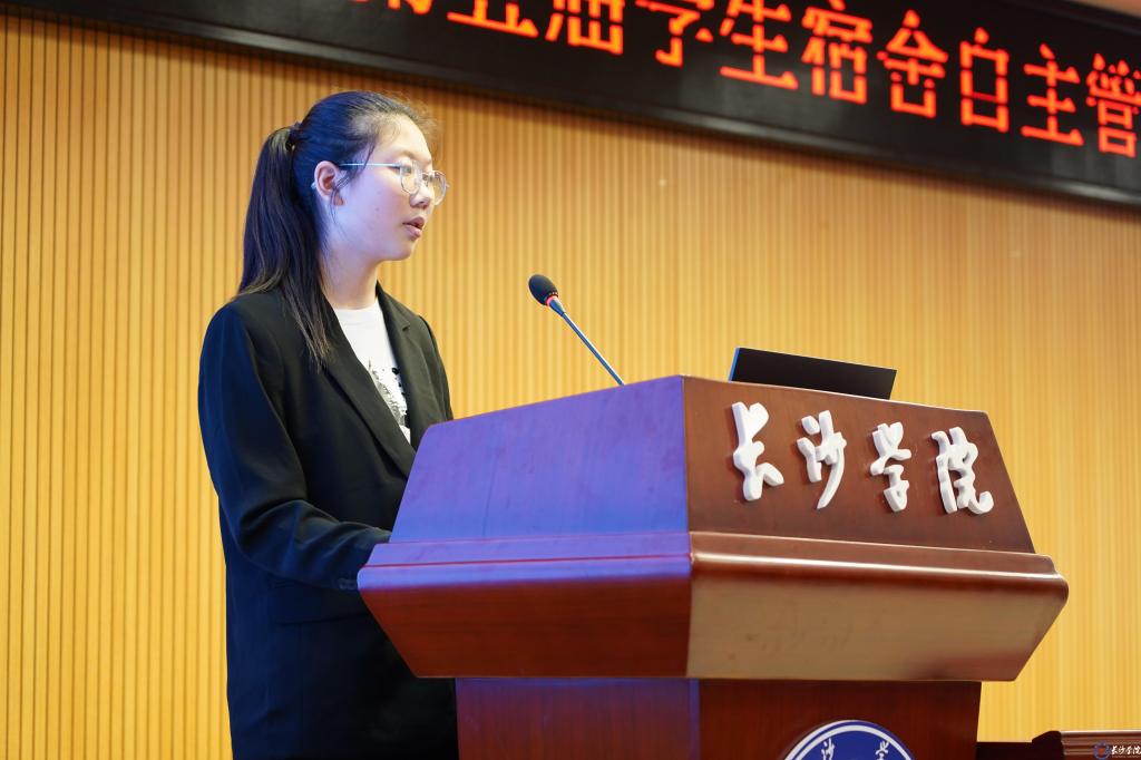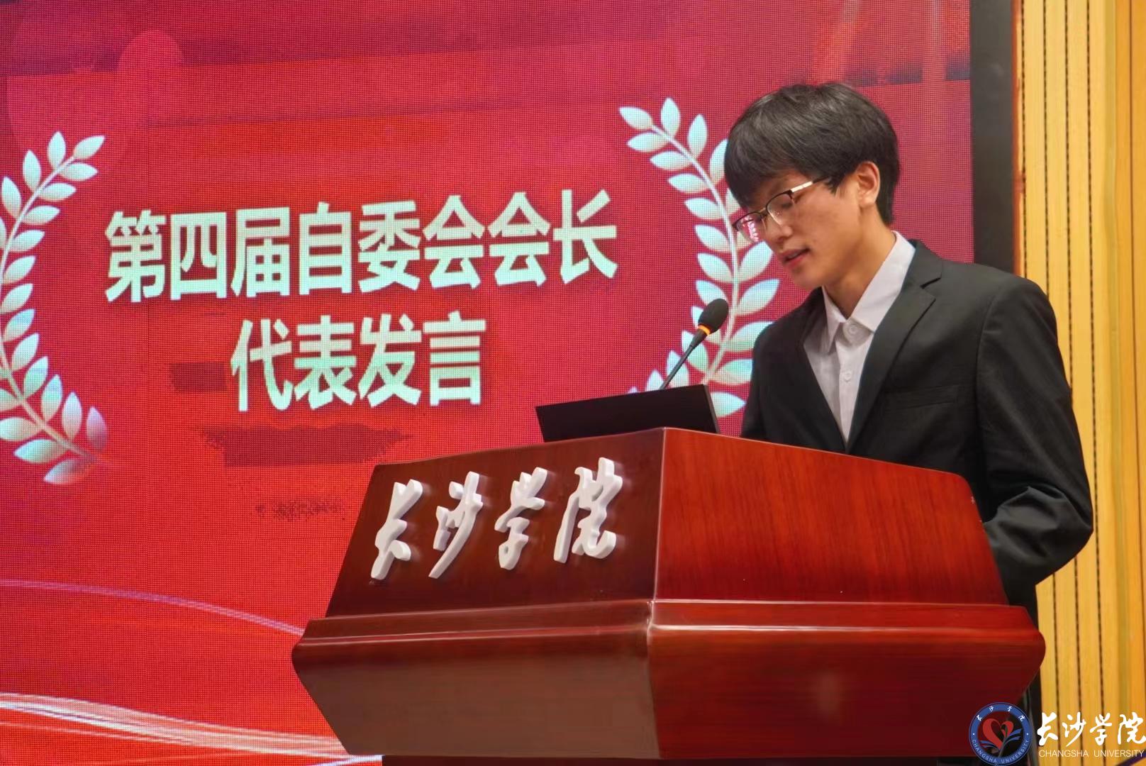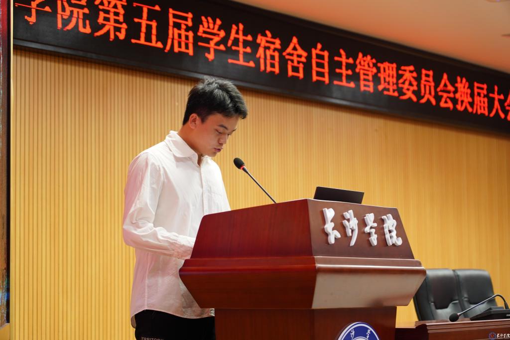 陈昊会长就第四届自委会工作从日常工作和特色活动两方面进行了总结汇报和心得分享。他说,在“寝室文化艺术节”“五好宿舍评比”等活动中,同学们积极参与,全体栋长发挥了重要的作用;自委会干部要有共同的使命认同,发挥好为同学们服务的工作职能。他相信在新一届自委会干部的带领下,全体成员一定能为同学们营造更加美好宿舍学习生活环境,为园区文化建设与管理服务做出更大的贡献。