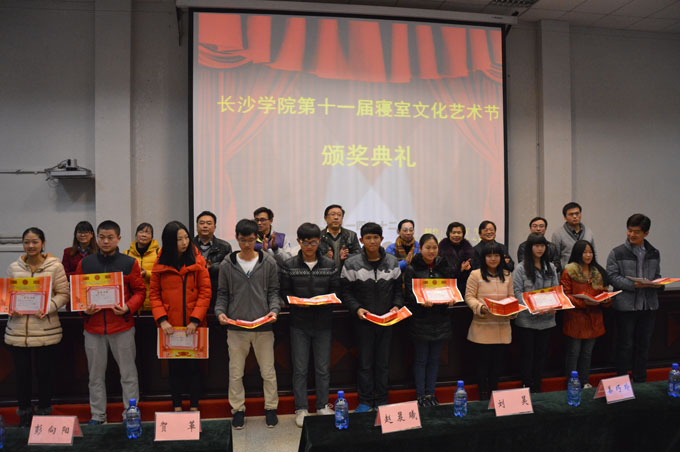 12月17日,长沙学院第十一届寝室文化艺术节颁奖典礼在学术报告厅举行。学生工作部刘昊部长、黎文普副部长、姜巧玲副部长,生环系赵晨曦书记、数计系彭向阳书记、外语系贺革书记、经管系王永启副书记、各园区负责人,学工部杨桦老师、各系生活部部长以及获奖代表参加了此次颁奖仪式。颁奖典礼由校生活部部长生亮主持。