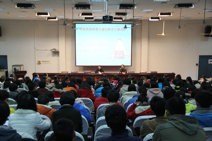 1月13日下午,省资助中心主任刘桃初受邀来校进行"国家资助政策与大学生励志"专题讲座。各系党总支副书记、负责资助工作的辅导员老师以及300余名获得国家资助的同学代表听取了讲座。讲座由学工部部长刘昊主持。