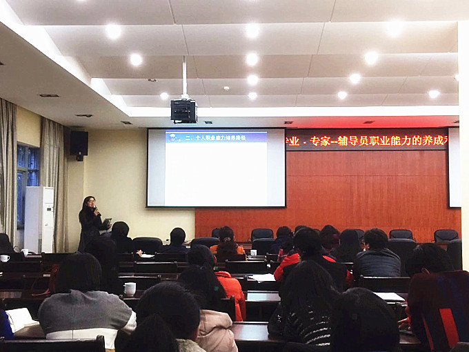 为深入解读辅导员职业能力标准,促进辅导员职业能力发展,3月4日下午,学工部邀请湖南大学茹娜老师来校做“专注•专业•专家——辅导员职业能力的养成及发展”专题讲座。各系党总支书记、副书记以及全体辅导员老师听取了讲座。