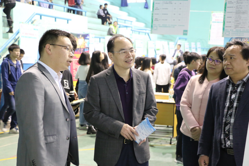 校领导前往现场指导,并与校友企业代表就我校人才培养、就业工作进行了亲切交谈。韦成龙与现场多家企业的招聘负责人进行了深入交流,并表示本次校友专场招聘会是我校深化校企合作、推进就业工作的有力举措之一,对优秀校友回母校为学弟学妹创造就业机会表示衷心感谢,同时希望校友们多多关注学校,为学校发展建言献策。杨小云对2018届毕业生提出建议,他希望同学们首先要提高自身抗压能力,明确自己的职业定位;其次要夯实专业基础,注重培养与企业需求相适应的能力和素质;同时,他表示我校将继续推动教学改革、人才改革,在专业教学方面继续深入拓展。