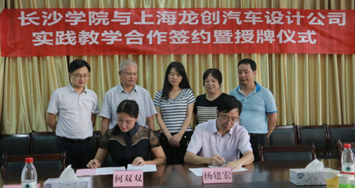 9月26日下午,机电工程学院与上海龙创汽车设计有限公司在理工楼C区三楼会议室举行了合作开展实践教学签约授牌仪式。出席仪式的有上海龙创汽车设计有限公司人才教育事业部主任何双双,长沙学院教务处处长杨建宏,机电工程学院院长李国锋、党总支书记全湘燕、副院长许焰及有关专业教师,李国锋主持签约授牌仪式。
