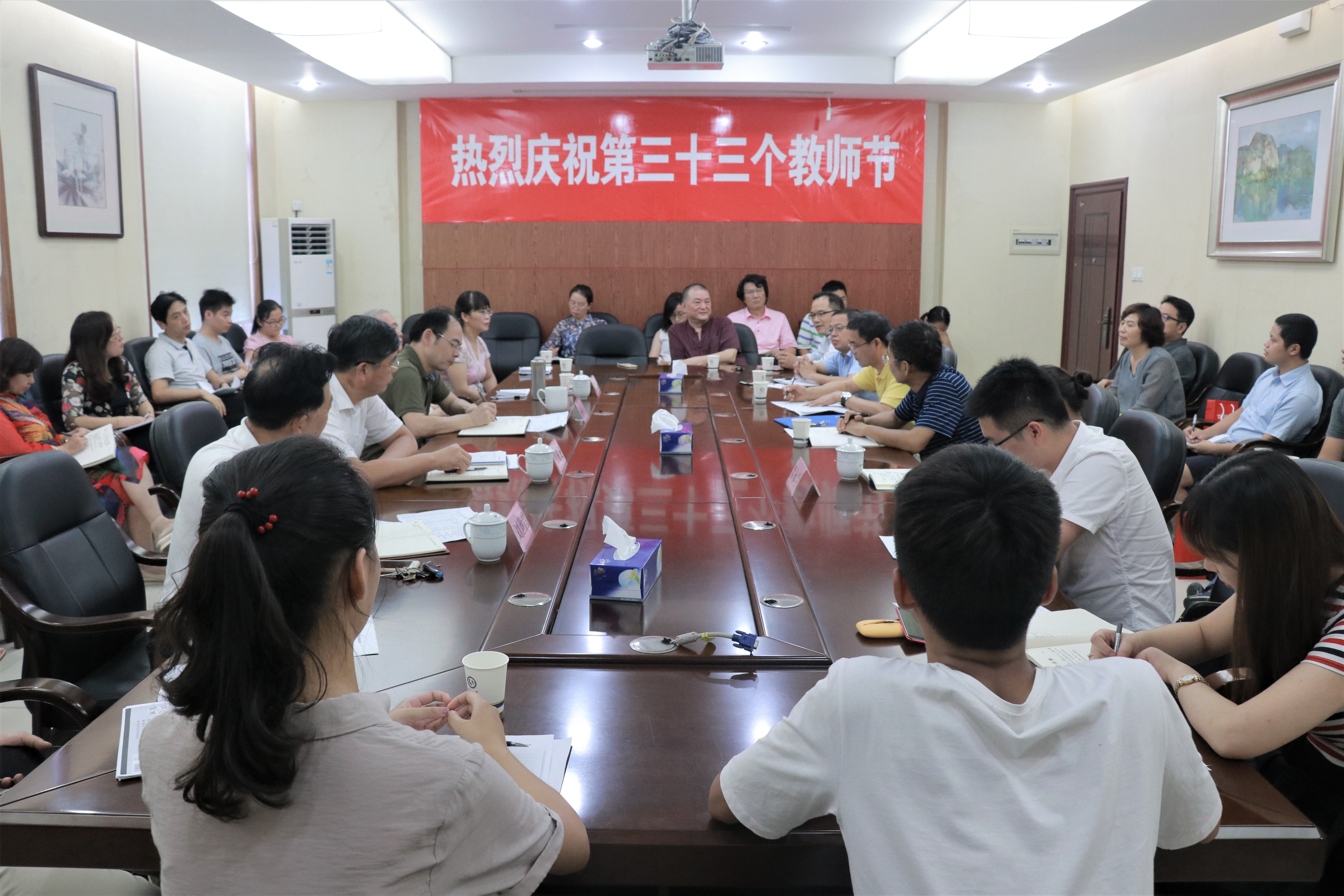 会上,来自影视艺术与文化传播学院的刘紫林和机电工程学院的赵向云两位同学,作为优秀学生代表首先发言。他们分享了自己与老师相处之间的故事,表达了对老师的尊敬与谢意,代表全体学生向辛勤培育他们的老师们致以节日祝福。接着,教师代表们结合实际畅谈教书育人的感受。来自电子信息与电气工程学院的学科带头人朱培栋教授表示自己要努力成为本学科方向的设计师、平台的建筑师、科研的教练员、出成果的运动员。离退休教师代表罗永兰教授提出了加强青年教师指导、帮扶,加强实践教学的宝贵建议。艺术设计学院院长柳玉告诫青年教师“有付出才有回报。”在“怎样加强人才培养、怎样提升科研水平、怎样主动服务社会”等方面,教师代表们各抒己见,为学校的发展建言献策。座谈中,大家一致表示,教师是神圣的职业,学校是每个教职员工的家。“师者,传道授业解惑也。”教师们要甘守一片净土,安于三尺讲台,不忘初心,继续前行。