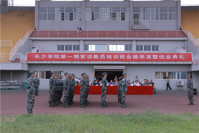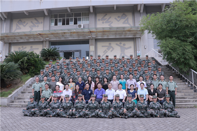 9月1日下午,我校第一期军训教员培训会操表演暨结业典礼在天健体育场顺利举行。党委书记韦成龙、副书记屈林岩,副校长刘世昌、周明侠,相关部门负责人出席了结业典礼。81名军训自训教员接受了到场师生的检阅。