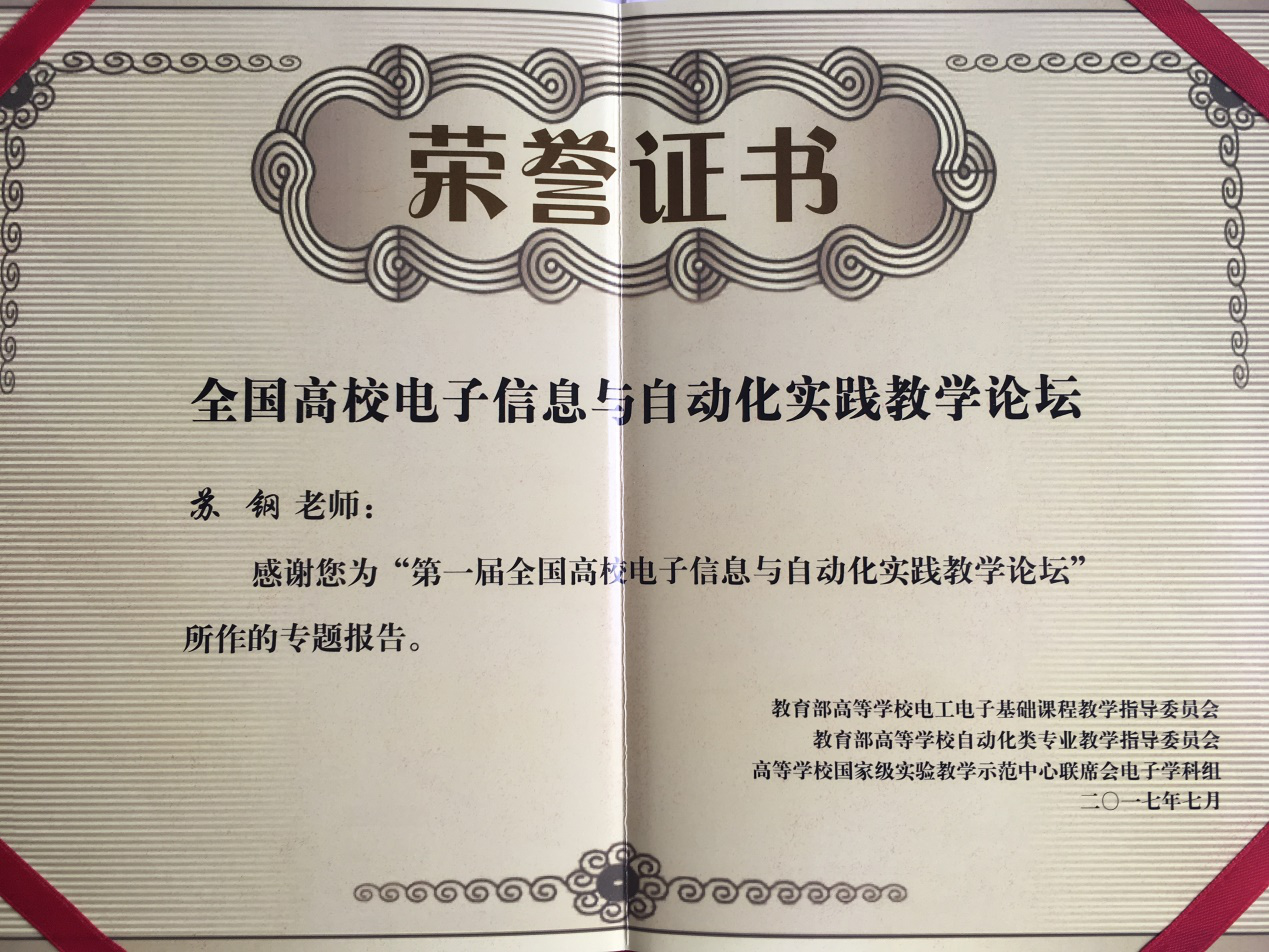 7月16日至18日,第一届全国高校电子信息与自动化实践教学论坛在辽宁省大连市举办,我校电子信息与电气工程学院苏钢副教授应邀参加了论坛并作专题报告。