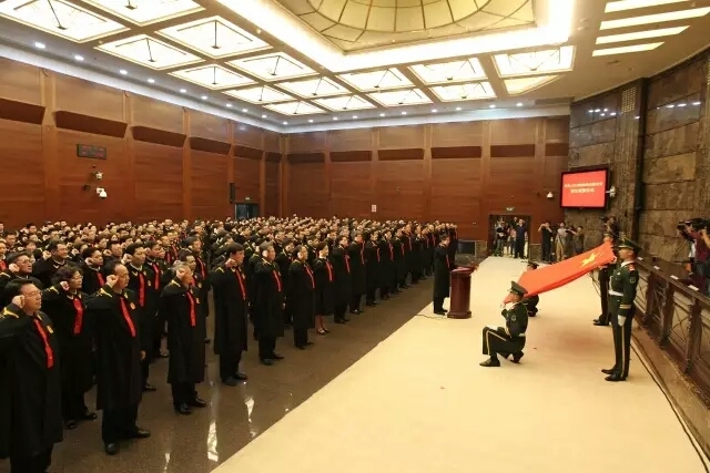 近日,最高人民法院举行首批员额宪法宣誓仪式。最高人民法院院长、中华人民共和国首席大法官周强领誓,三百余名身着法袍的法官面对国旗庄严宣誓,我校法学院89届校友宁晟赫然在列。
