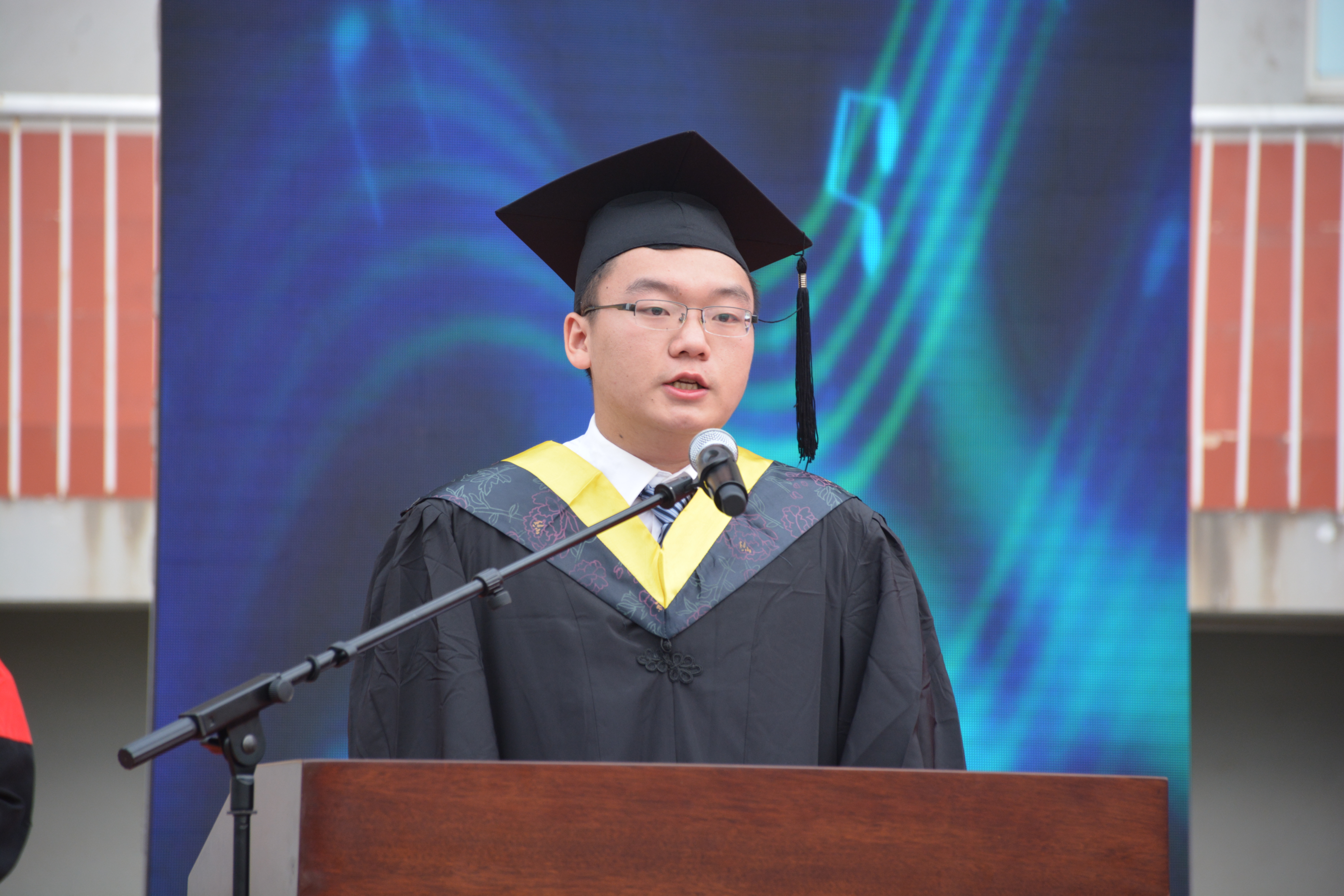 大学四年路,一生长大情。即将离开母校的学子们千言万语难道四年情。来自计算机工程与应用数学学院计算机科学与技术专业的优秀毕业生代表袁鸿志同学真诚地向母校与恩师致谢,回忆起大学四年的美好点滴,流露出无限的不舍与难忘,感慨四年来学校的新发展与大变化,更为之骄傲与自豪。袁鸿志表示,自身定会继续坚持“力学笃行”,将知行合一达到新的境界,在未来的奋斗路途中奋发进取,为母校争光。