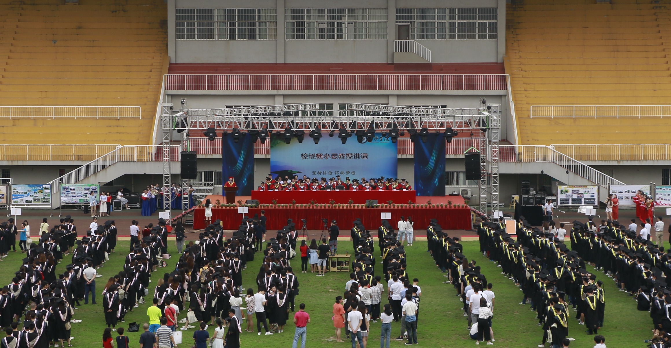 6月19日上午,我校2017届毕业典礼暨学士学位授予仪式在天健体育场隆重举行,2984名普通全日制本科毕业生即将告别母校,踏上新的人生旅程。校领导韦成龙、杨小云、屈林岩、王永宏、刘世昌、杨兴龙、胡石明、周明侠、张世英、郭清泉、李云龙、甄洁洪,各学院及各职能部门负责人、教师代表、全体学生辅导员,全体2017届毕业生参加了毕业典礼。典礼由党委书记韦成龙主持。