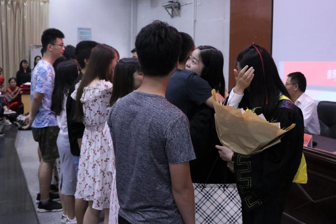 最后,伴随着毕业纪念视频的播放,张世英向往届优秀校友代表赠送纪念戒指,往届优秀校友代表也给应届毕业生赠送毕业戒指。戒指上刻有“长沙学院”、校训“力学笃行”和每一位毕业生的姓名、学号,意在用戒指传递感恩,为毕业生们的四年大学生涯画上圆满句号。