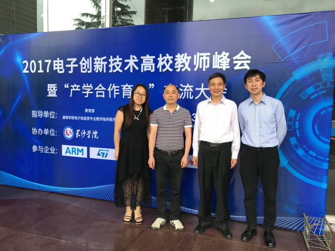5月23日,由教育部高等学校电子信息类专业教学指导委员会指导,360EET公司主办、长沙学院协办的2017电子创新技术高校教师峰会暨“产学合作育人”交流大会(长沙)在我校图书馆报告厅举行。此次会议得到ARM、ST(意法半导体公司)、FLUKE、中智讯、KEYSIGHT等多家国际知名企业支持,吸引了包括中南大学、湖南大学、国防科技大学、长沙理工大学和湖南农业大学等省内高校100多名师生参与。