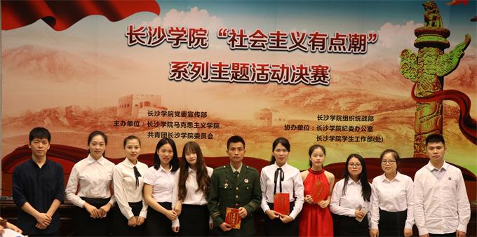 根据省委宣传部和省委教育工委迎接党的十九大的重大活动部署,我校今年3月启动了“社会主义‘有点潮’”系列主题活动,广大师生踊跃参与。系列主题活动形式主要包括演(宣)讲比赛、征文比赛和社会主义“有点潮”主题歌创作大赛。22日晚进行了学生组宣讲决赛,晋级决赛的8支队伍围绕坚持和发展中国特色社会主义、实现中国梦的主题,畅谈对科学社会主义特别是中国特色社会主义“四个自信”的认识和体会。来自经济与管理学院的王亦齐身着军装,踏着正步上台,一出场便引来满堂喝彩,他结合自己的军旅生涯,阐述了新时代背景下的强军梦,指出军人的“中国梦”是用信仰守候党国,用热血保卫人民;向琦以《人们的名义时》为题,以热播反腐剧《人民的名义》为切入点,讲述了反腐败工作对官员、对政党及对人民的意义,点明反腐败工作任重而道远;张嘉慧表达了对赤色中国深沉的爱,喊出了我爱我党,我爱我国,我爱这中国红的心声。经济与管理学院由于发动广泛,组织得力,获得学生组演(宣)讲比赛三个一等奖。