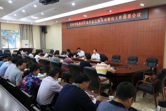 为深入开展学校教育行业不正之风专项整治工作,5月16日,我校召开会议部署教育行业不正之风专项整治工作,党委书记韦成龙出席会议并讲话,党委委员、纪委书记杨兴龙主持会议并提出工作要求,党委委员、纪委副书记甄洁洪解读《长沙学院教育行业不正之风专项整治工作方案》,学校教育行业不正之风专项整治工作领导小组办公室全体成员参加会议。