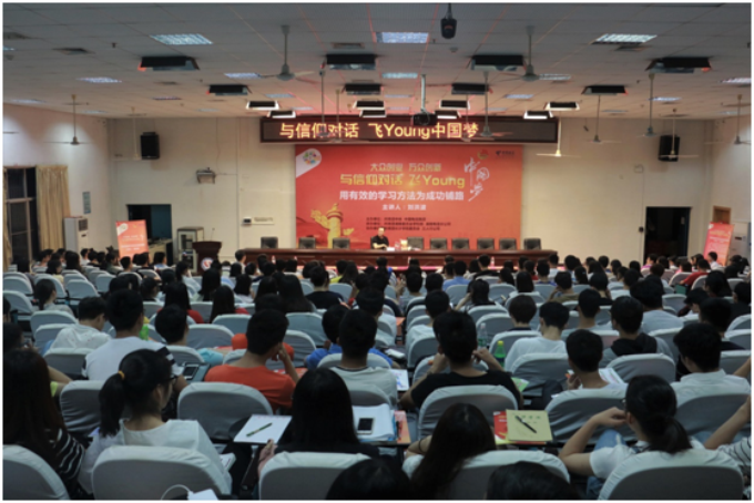 为激发学生学习英语的兴趣,更好地引导学生进行高效学习,5月17日晚,我校在致远楼学术报告厅举行“与信仰对话——用有效的学习方法为成功铺路”专题教育讲座。讲座由共青团中央、中国电信集团主办,团省委学校部、校团委承办。学为贵教育集团总裁、英语教育家刘洪波受邀主讲。我校团学干部300余人到场聆听,讲座由团委书记徐远超主持。