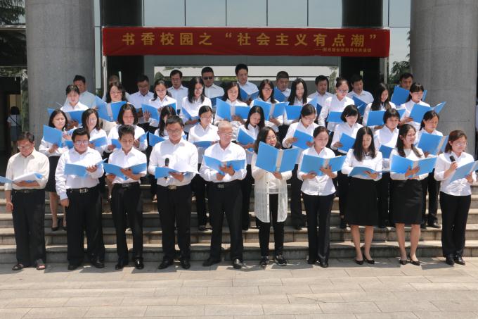 5月17日上午,我校图书馆全体馆员饱含热情,再读经典,在图书馆前坪举行“社会主义有点潮”经典诵读活动。图书馆馆长喻秋兰,副馆长刘海萍、邓谷泉及全体馆员出席了活动。