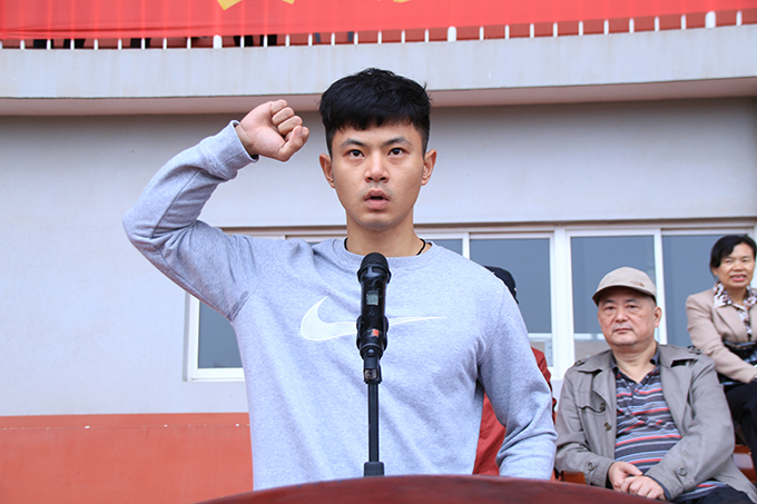 随后,张世英宣读了领导及嘉宾名单并宣布升旗仪式开始。在庄严肃穆的升旗仪式后,党委副书记、院长杨小云宣布第十二届阳光体育运动会正式开始。最后裁判员代表刘亮、运动员代表胡超分别宣誓,表达了公正裁决与赛出风格赛出水平的决心。