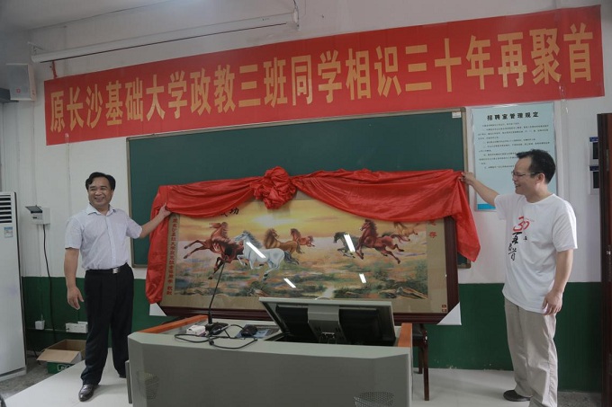 7月16日,原长沙基础大学86届政教三班同学相聚在阔别30年的母校——长沙学院,共忆往昔岁月,共叙师生情谊。