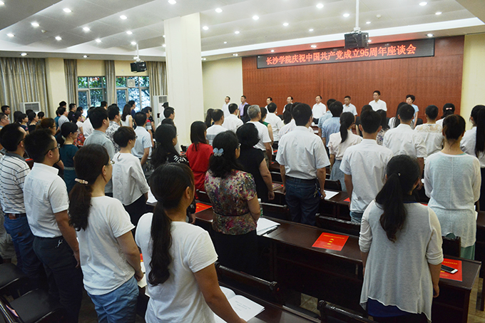随后,长沙市优秀共产党员代表、生物与环境工程系教授张志元,学校优秀共产党员代表、中文与影视传播系教师易为,学校先进基层党组织代表、机关党总支第十党支部书记黄竹君,湖南省“百佳大学生党员”代表、机电工程系2012级学生朱开放,预备党员代表、音乐系教师熊琦分别发言。