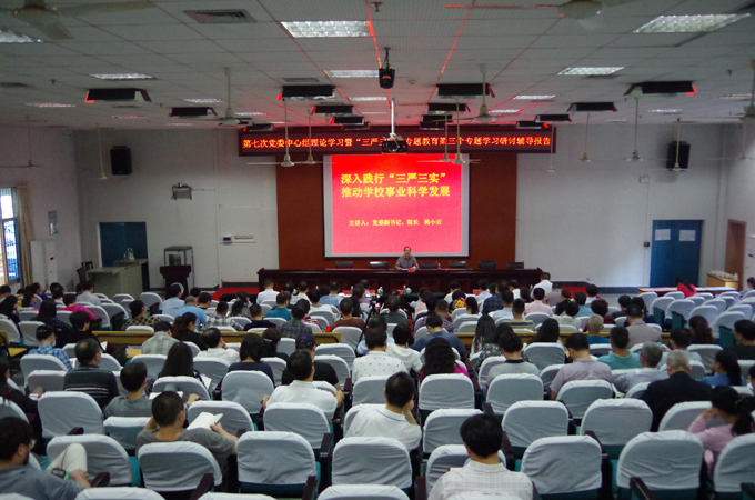 党委副书记、院长杨小云从"进一步提高对开展'三严三实'专题教育的认识"、"按照'三严三实'要求进一步深化干部作风建设"、"以严的要求和实的举措推动学校事业科学发展"等三个方面详细阐述了学习习近平总书记系列重要讲话精神的体会以及结合学校事业发展落实"三严三实"的思考。